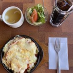 ニューライフ千城 - ピザ風エミリアーネとアイスコーヒーのセット¥780